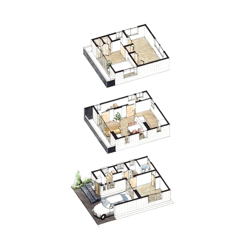 お客様のご要望などをヒアリングのうえ敷地の各種法令などの調査を行い建物プランと概算の見積もりを無料でご案内いたします。10坪や15坪といった狭小地や変形地など、その敷地の条件や周辺の環境に合わせた柔軟な家づくりが可能です。過去にハウスメーカーなどに相談をしたが、狭小地や変形地といった理由などで納得のいくプランを提案してもらえず、マイホームを諦めた方も是非一度ご相談ください。また戸建住宅でなく賃貸などの集合住宅の注文住宅も可能です。