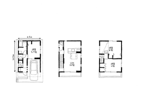 - 土地面積:約14坪、建物の間口が4.5mながら4LDK+トイレ2ヶを確保したプラン。